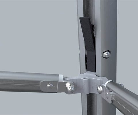 Robuste et esthétique, il est constitué d’une structure à toit plat inclinable, grâce à des croisillons télescopiques. Ses pieds sont équipés de vérins à gaz assurant une assistance au déploiement. Un système unique et breveté qui vous accompagnera quotidiennement !
